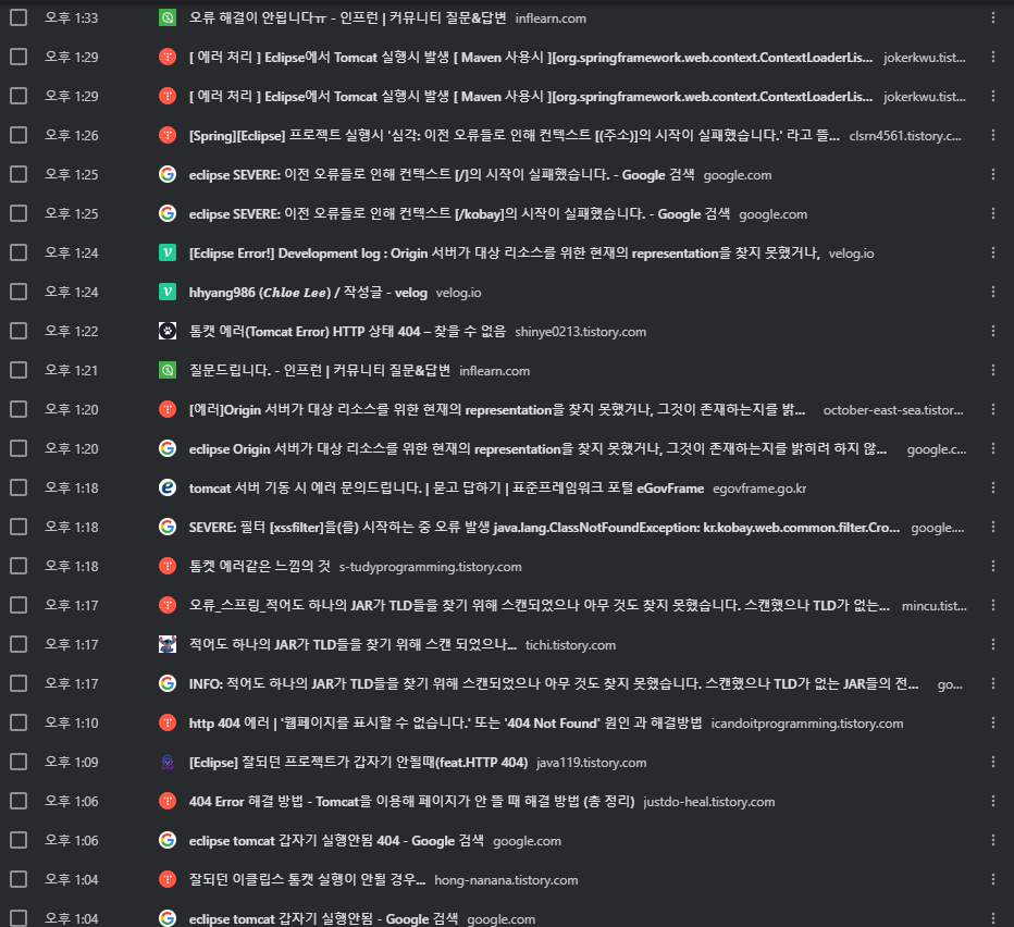 eclipse 와 tomcat은 너무 변덕이 심해... 웹개발자 분들 오늘도 화이팅합시다...